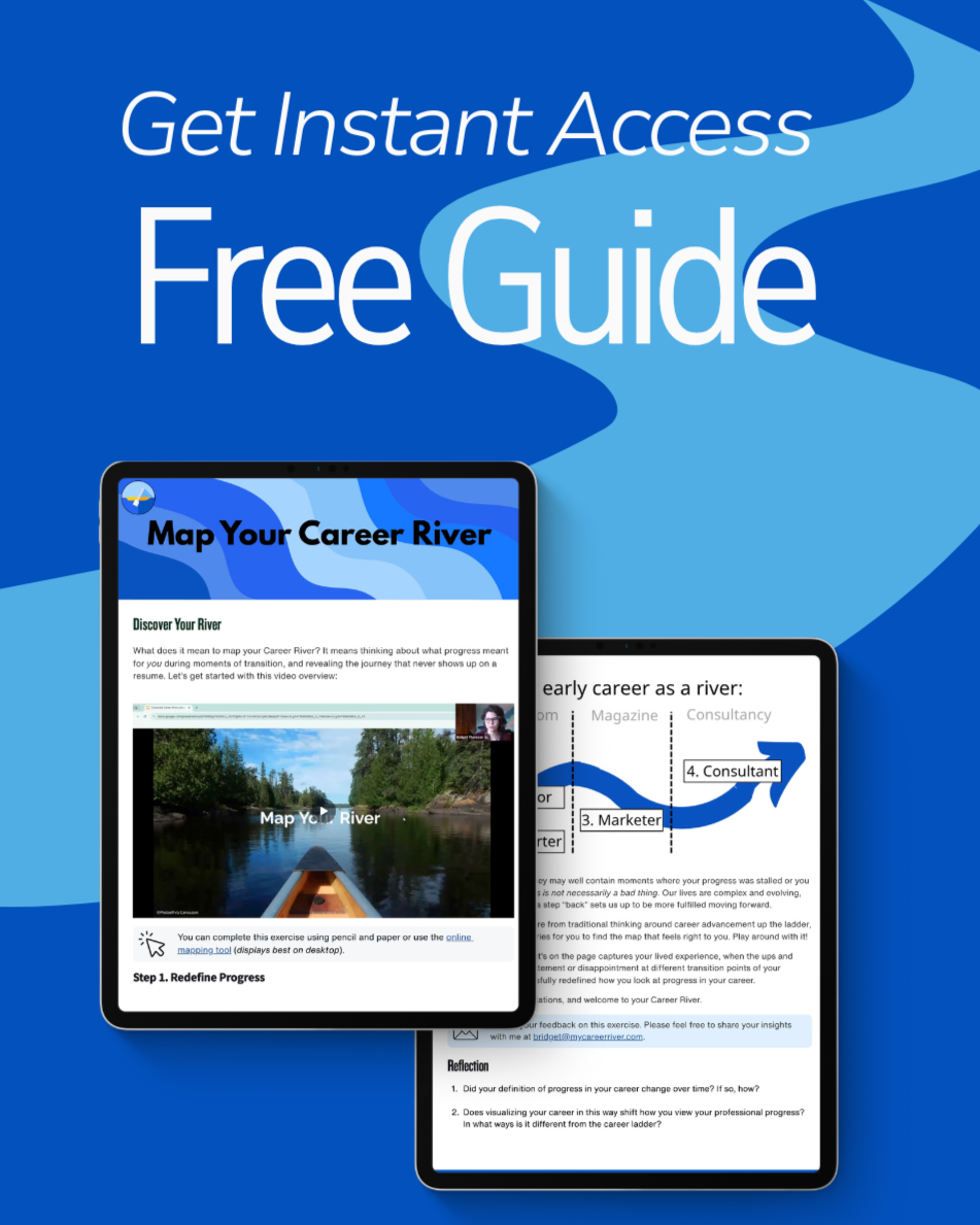 Subscribe to the weekly Explore Your Career River newsletter for free and get instant access to the Map Your Career River guide.