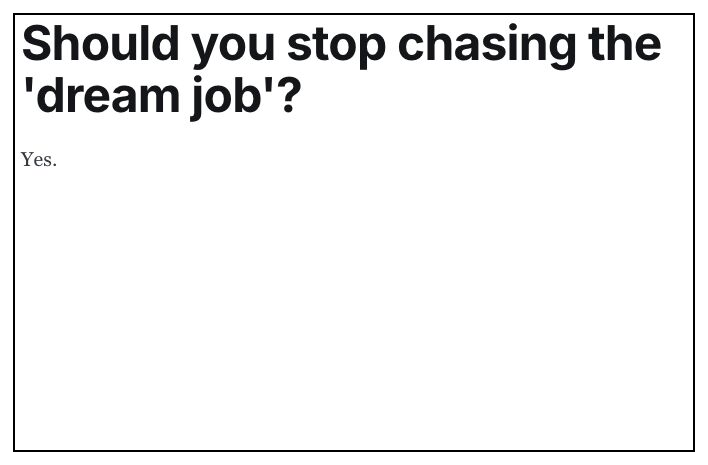 But I'll go ahead and explain why I urge you to kick the “dream job” to the curb.